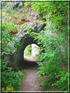 de andere kant. Na verloop van tijd kom je uit bij een klein bruggetje dat om een grote rots heen loopt. Je passeert (links) nog twee mooie rotsen (tartines genoemd, vanwege de vorm van sneetjes brood). Waar het niet anders