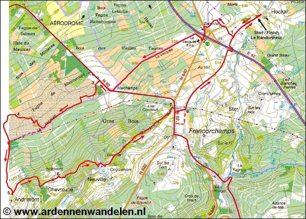 vanuit Bronromme (ten noorden van Stoumont) via Berinzenne over de Col du Rosier en de Malchamps naar Hockai,